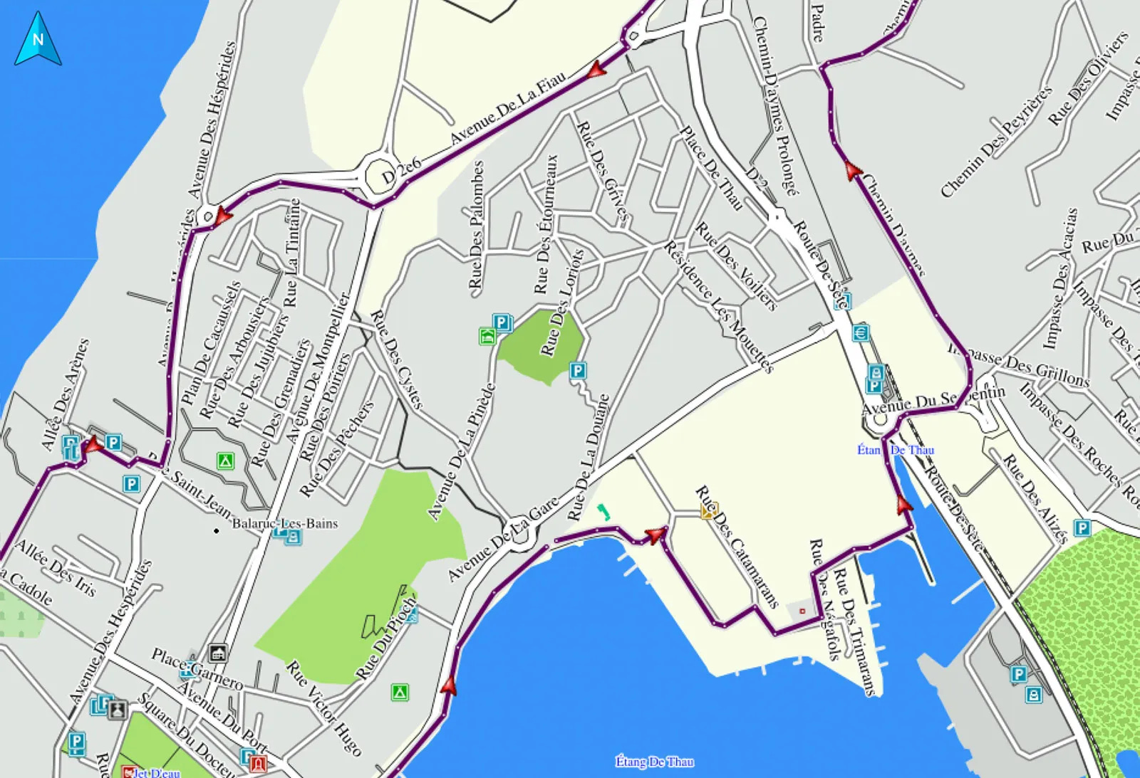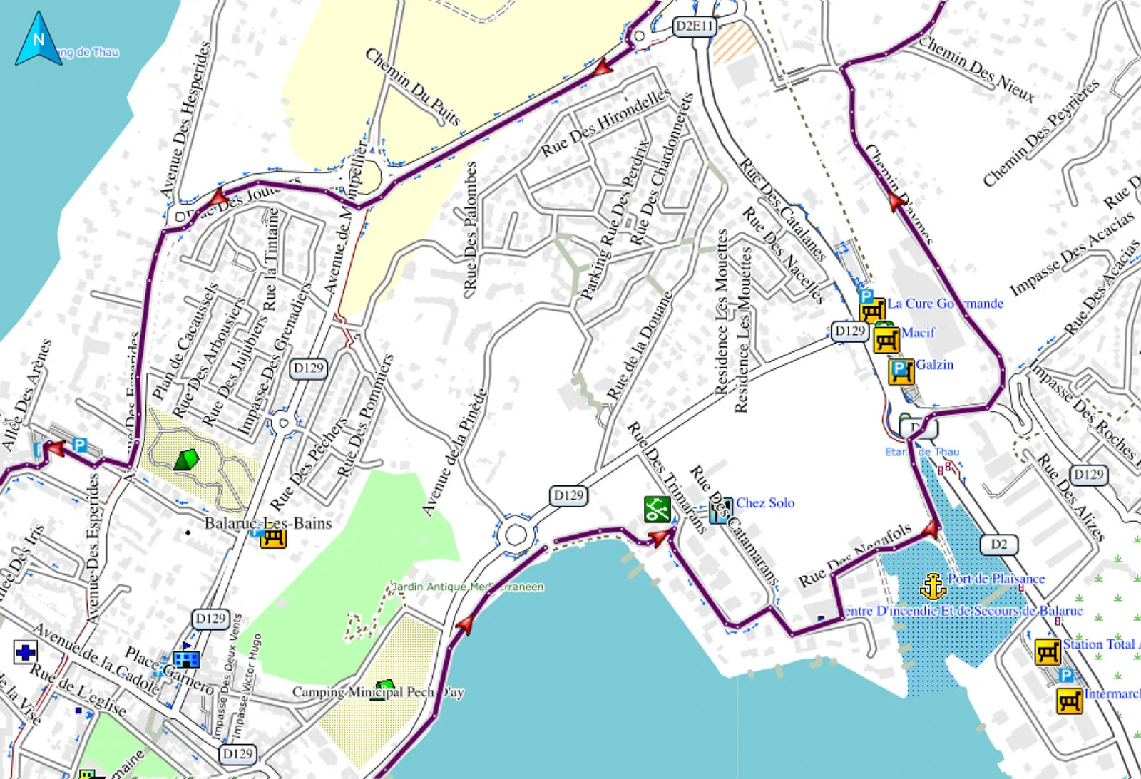 Selon moi, la carte fournie par Garmin est trop colorée pour le suivi de trace (ce serait possible si Garmin offrait la possibilité de calibrer la taille de la trace, ce qui n’est pas le cas sur mon nouveau 530 et ne l’était pas davantage sur mon 820). On ne peut que changer la couleur de la trace (et cela fastidieusement au coup par coup). Notez que la capture d’écran effectuée sur BaseCamp est très flatteuse.