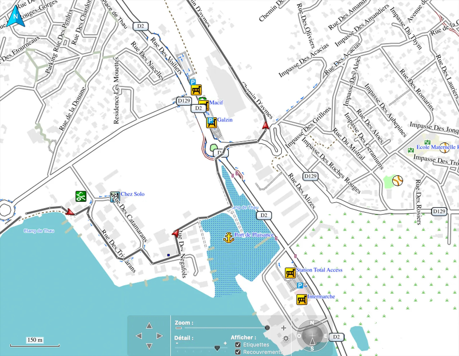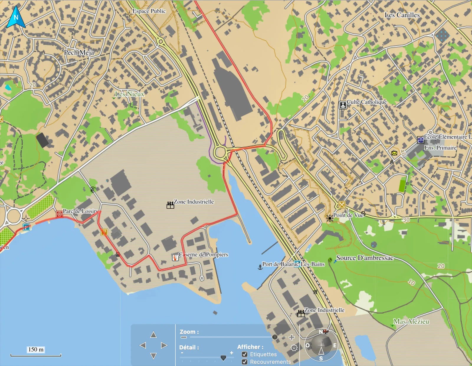 La carte Garmin étant précise mais un peu kitsch, je dois en choisir une autre. J’ai ma petite idée, mais j’effectue quelques tests sur mon ordinateur avec BaseCamp (en fait, je copie les cartes sur le GPS ou un disque virtuel simulant un GPS Garmin pour que BaseCamp les reconnaisse).
